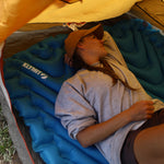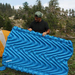 The Double V™ is your ultimate backcountry bed for two. With 47 inches of width, it offers generous space for couples or solo campers who want to stretch out. The V-chamber design helps minimize air movement and maintains insulation performance throughout the night, even if you toss and turn. Designed to fit perfectly inside a two-person tent, this pad is also rugged enough for use directly on the ground. It inflates quickly using the included inflation bag and is crafted from durable 75D polyester for reliable performance season after season.